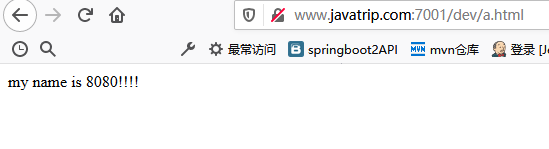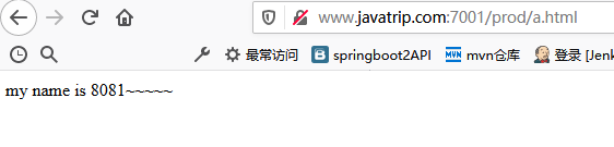 然后试试效果,分别访问`www.javatrip.com:7001/dev/a.html和www.javatrip.com:7001/prod/a.html,效果如下: