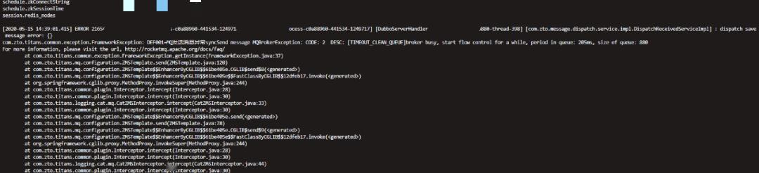 错误信息关键点:MQBrokerException:CODE:2 DESC:[TIMEOUT_CLEAN_QUEUE]broker busy,start flow control for a while,period in queue:205ms,size of queue:880。