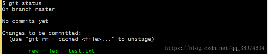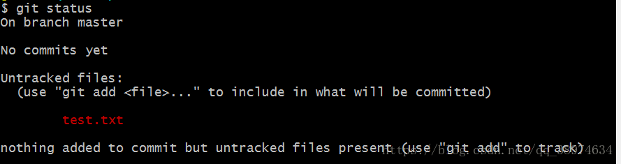 这个时候提示我们使用git add命令添加到暂存区