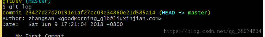 1.git log: 很清楚的看到我刚刚提交的信息,master代码主分区