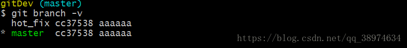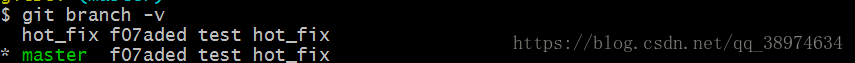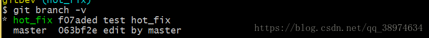 首先我创建修复bug的分支hot_fix,git branch -v 查看下分支