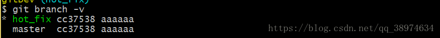 git branch -v 查看下分支,现在就切换到hot_fix分支了
