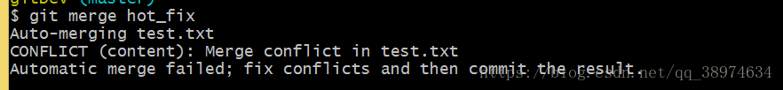 git merge hot_fix : 合并hot_fix 分支的内容