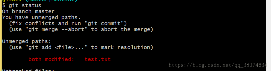 这个时候git status查看下状态