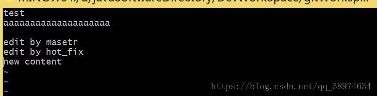 再查看下test.txt中的内容,已经将new content中的内容合并到mster中