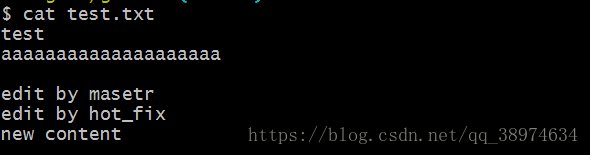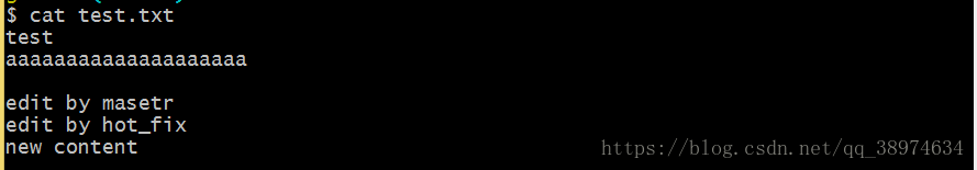 首先,我在hot_fix上修改test.txt文件,添加了new content内容
