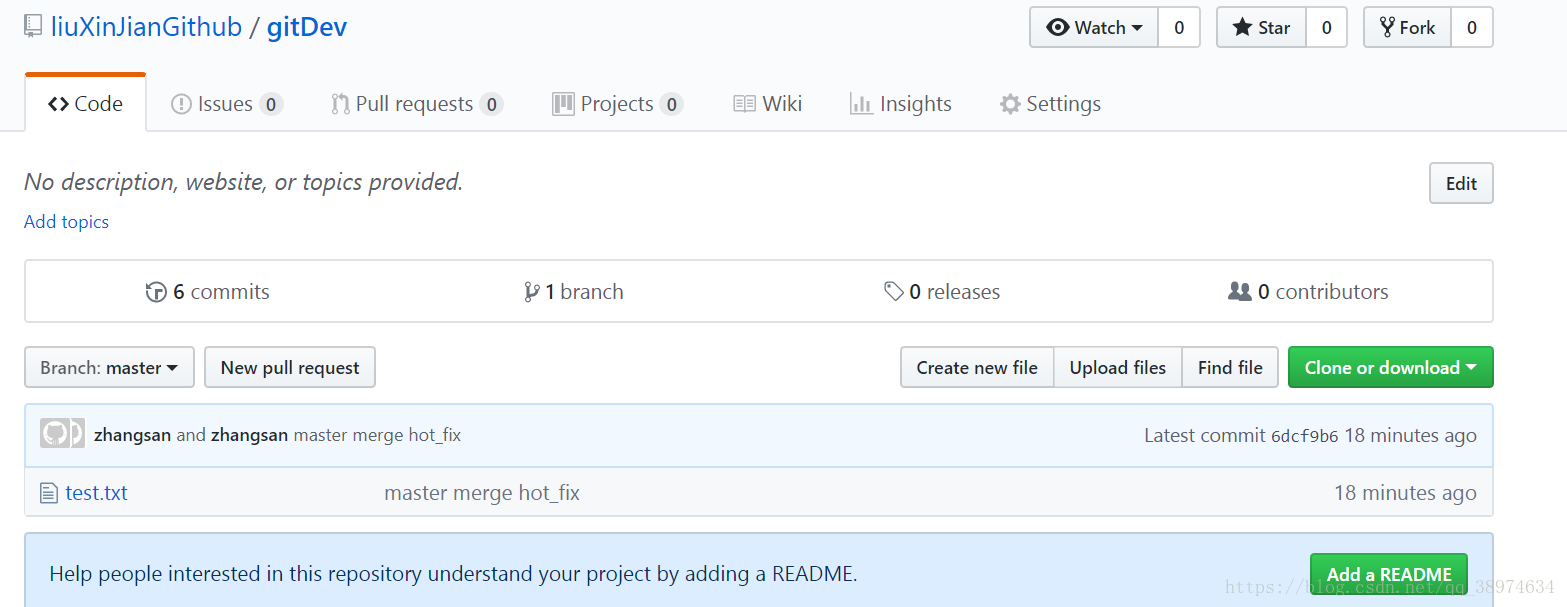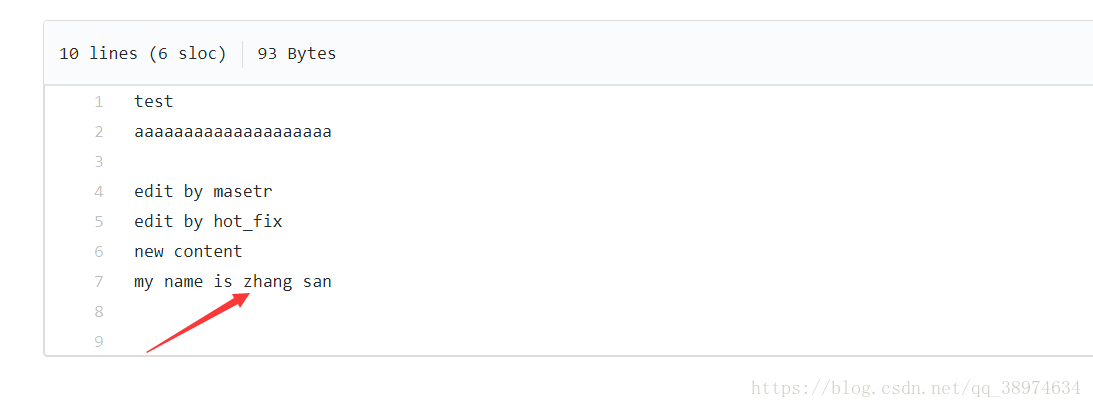 现在zhangsan修改了信息想要提交到github上面的话,可以看到新加了一条内容:my name is zhangsan