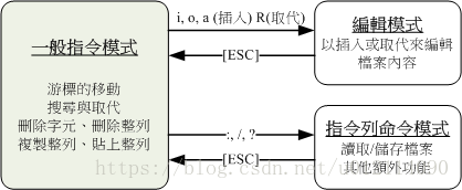 基本上 vi 共分为三种模式,分别是『一般指令模式』、『编辑模式』与『指令列命令模式』。