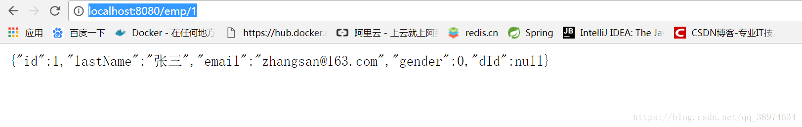 运行项目,打开浏览器输入 http://localhost:8080/emp/1 ,可以看到浏览器返回的值
