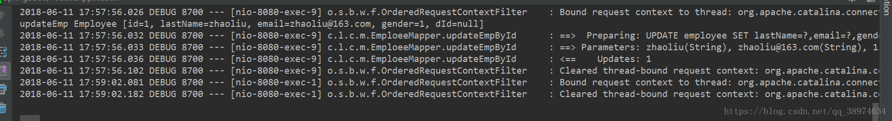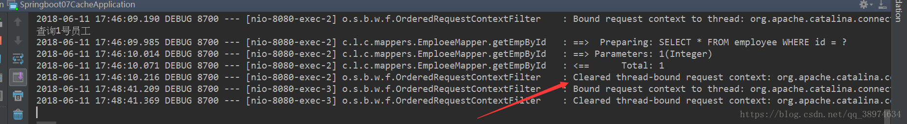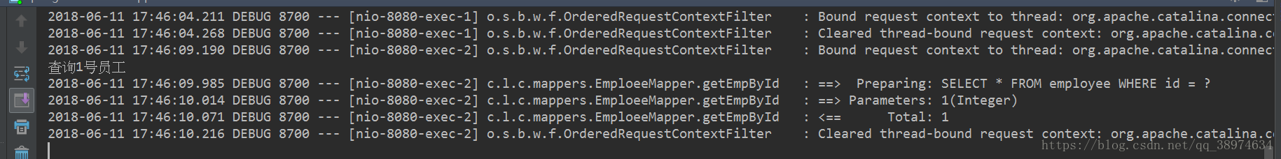 可以看到第一次获取数据是从数据库中获取的,再次输入 http://localhost:8080/emp/1