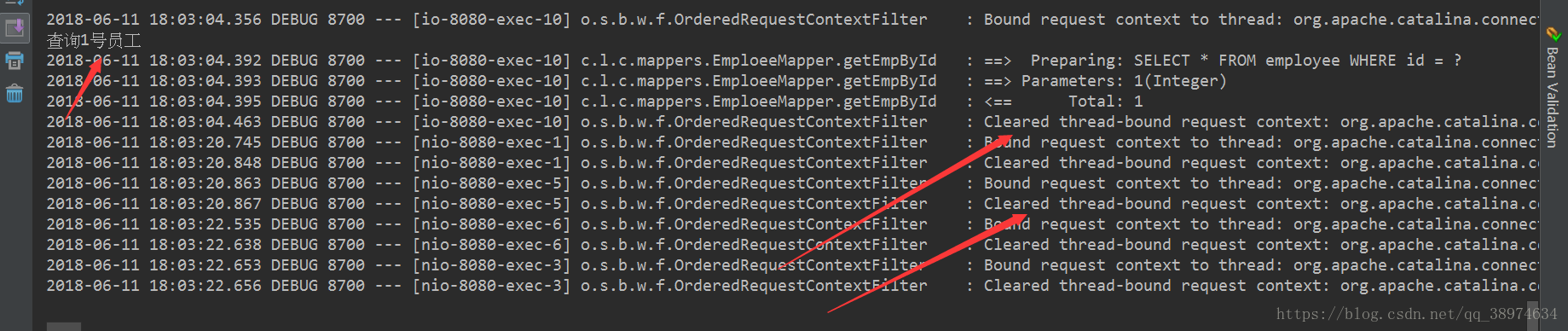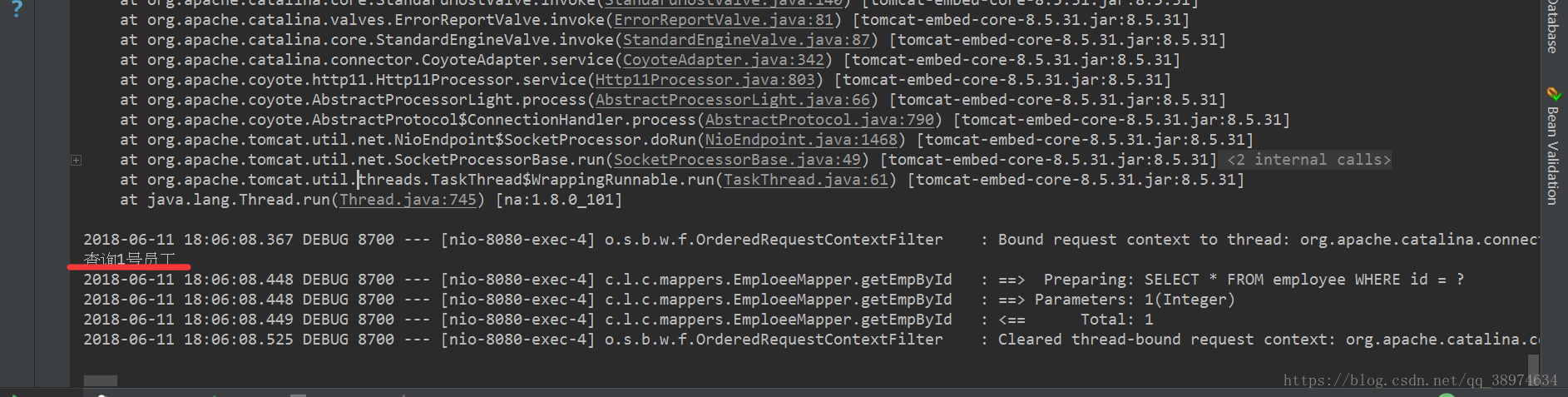 }首先从浏览器输入 http://localhost:8080/emp/1 ,将1号员工进行缓存