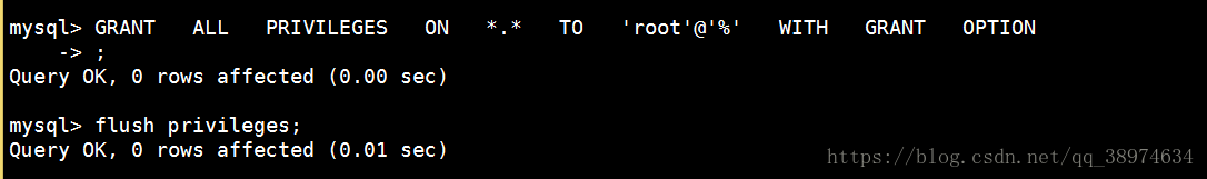 2.先授权给登陆的root用户,flush privileges 使更改立即生效