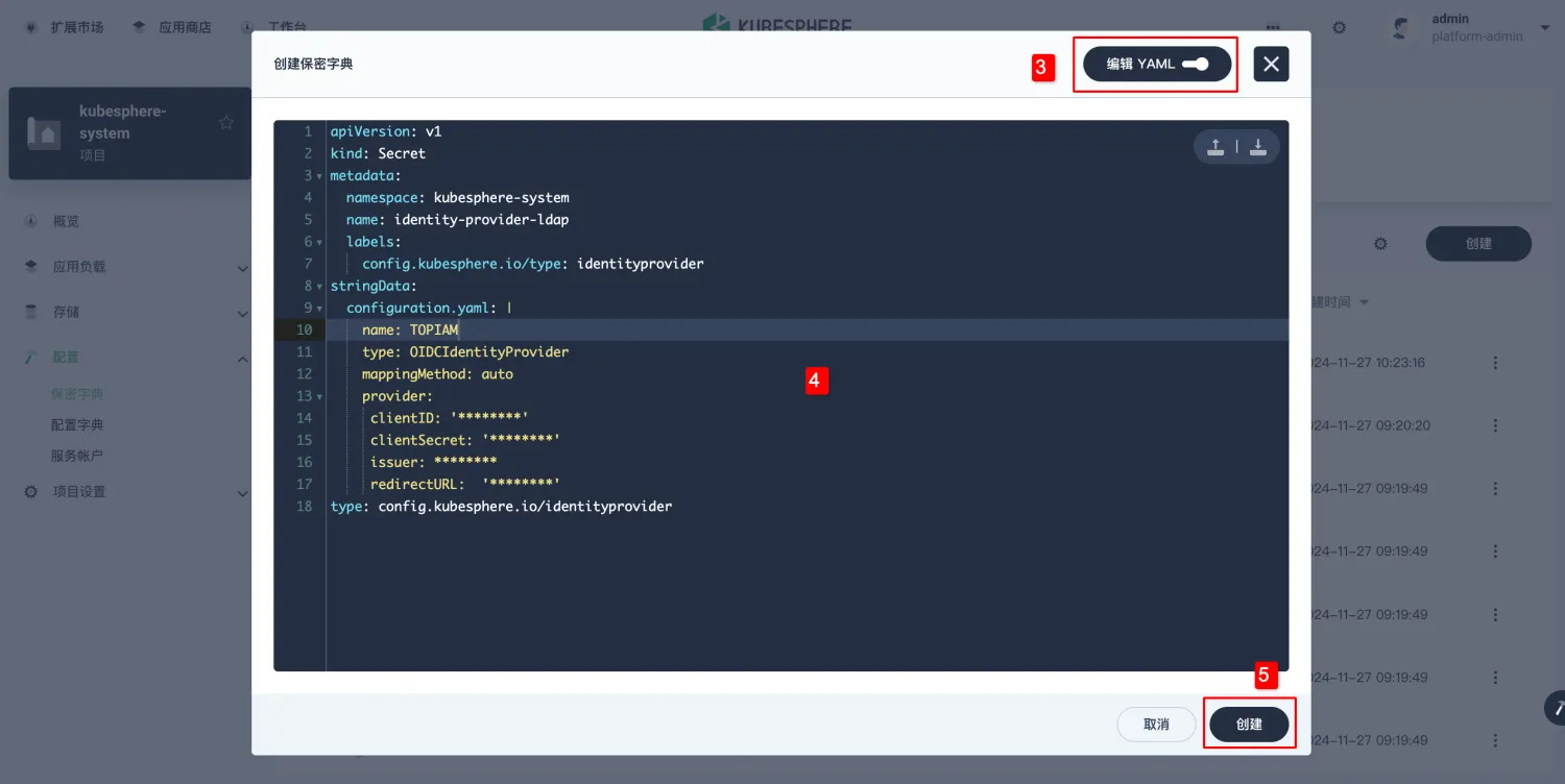 KubeSphere 支持多种协议,TOPIAM 都可以很好的与其进行集成,本篇文章 TOPIAM 使用OIDC协议与其对接。