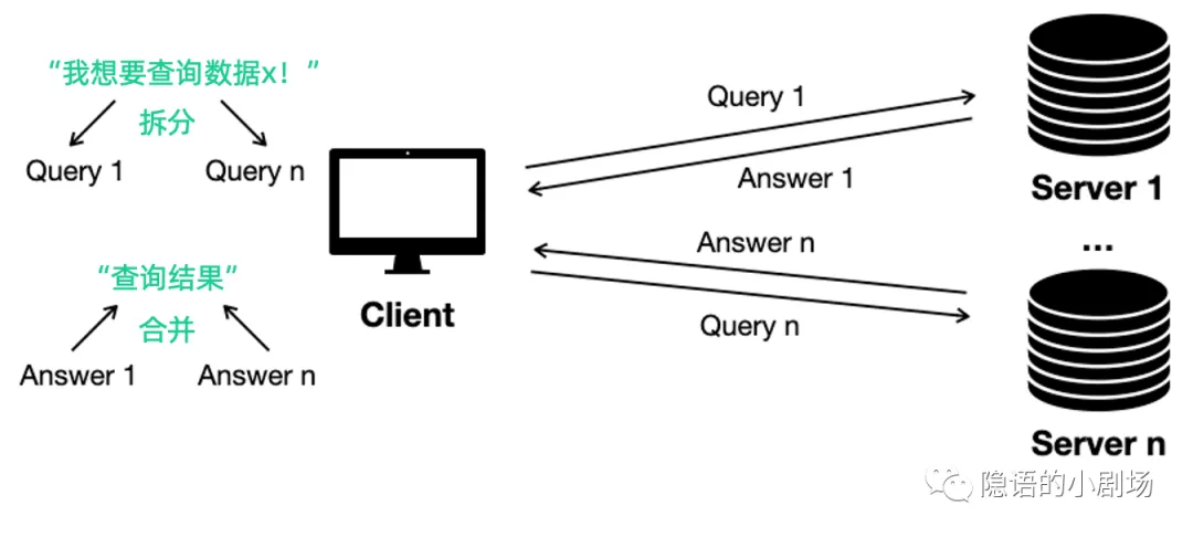 。Benny Chor, et. al. [1] 提出了一个问题:我们是否可以在 query 场景中保护 client query 的隐私性?由于当时分布式数据库存储的发展,因此他们提出了一个基于 replicated DB (and non-colluding) 的方案。
