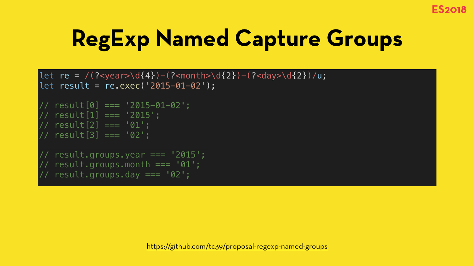 有关这些功能的更多信息可以在Mathias Bynens找到 - 这些建议背后的驱动力之一 - 他的博客: ECMAScript正则表达式越来越好!