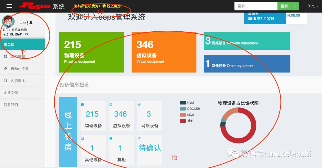(2)支持多机房的架构设计,同样,大家看到上图中的T2小圈圈,POPS这套架构可以支持多个机房部署(只需要简单的配置即可),前台展示只需要点击机房切换。
