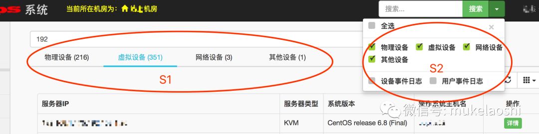 (1)搜索结果分块展示,这个功能仿照了阿里云搜索的展示效果,见上图“S1”小圈圈,这个全局搜索的功能展示分成多个tab栏目展示,用户能通过搜索在海量的数据中,通过不同的类别就能找到结果。