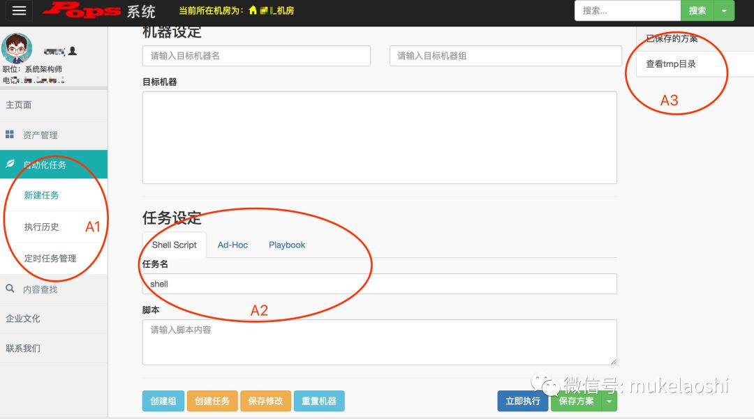 自动化任务执行,主要基于脚本批量实现对于机器组的管理,如下: