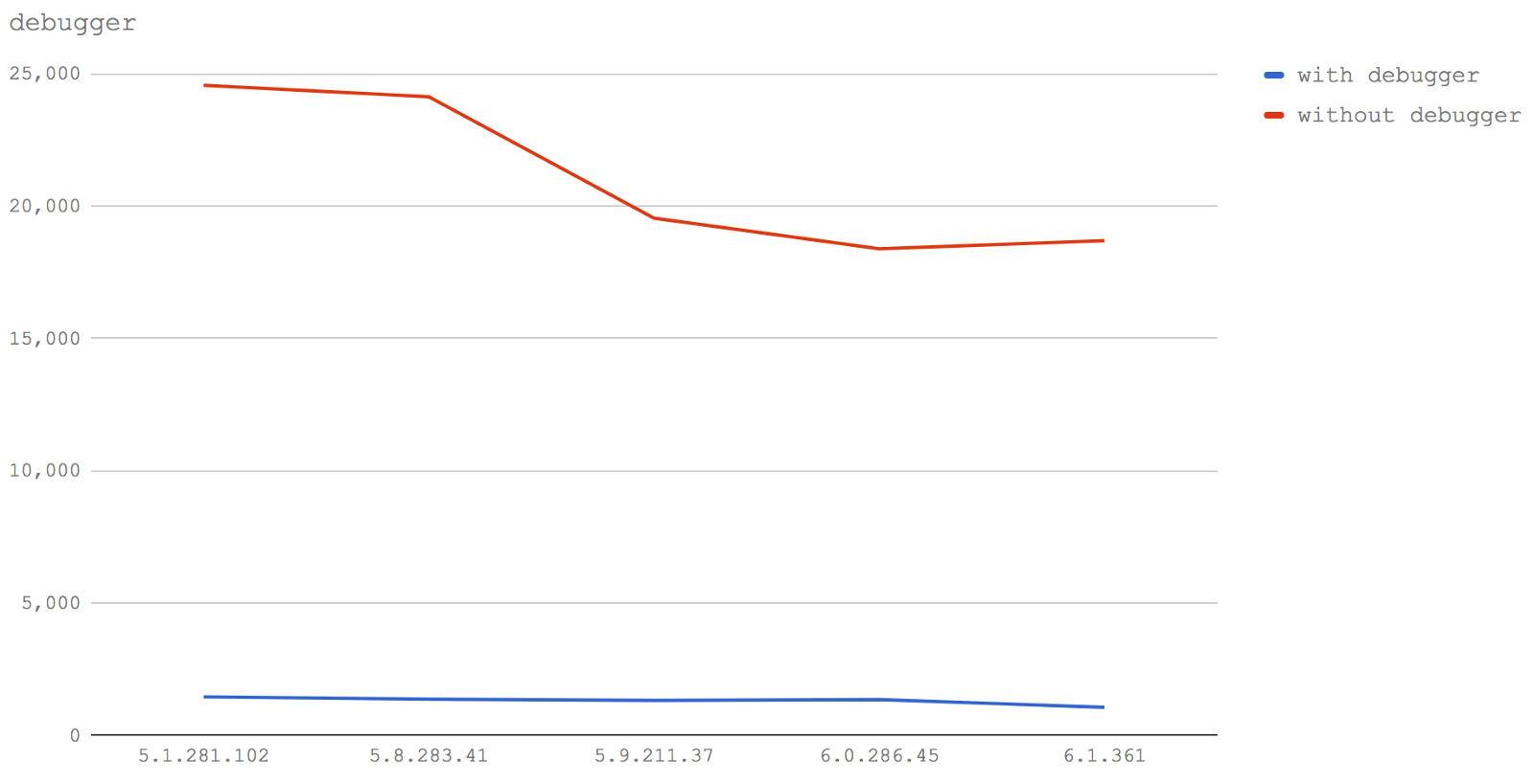 没有 debugger 的行明显地下降了连续的V8版本,我们将在摘要.
