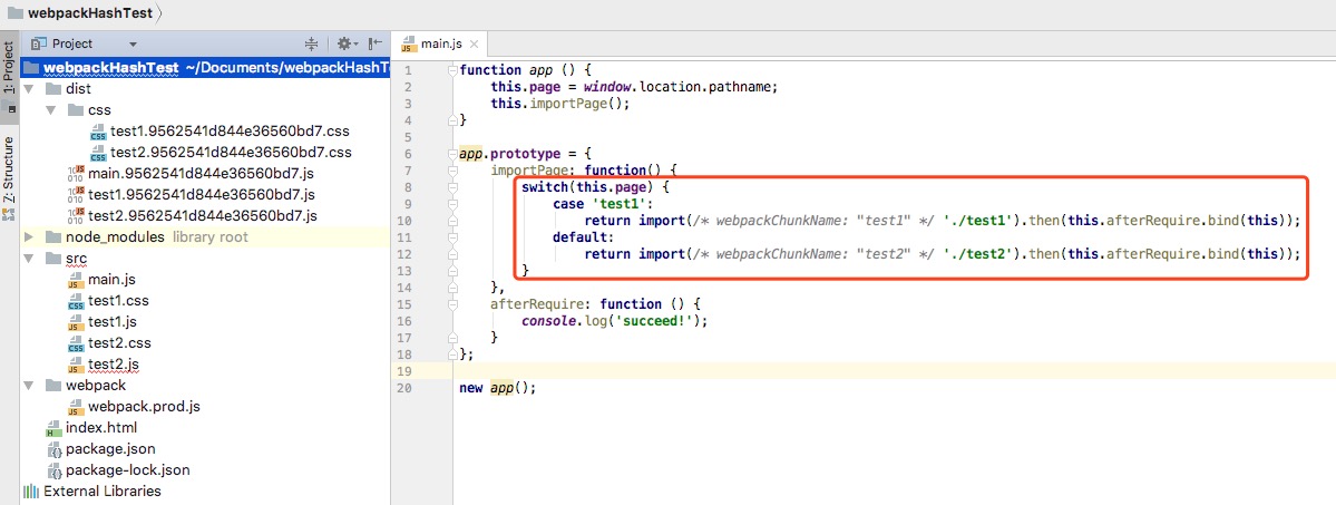 chunkhash根据不同的入口文件(Entry)进行依赖文件解析、构建对应的chunk,生成对应的哈希值。在生产环境里把一些公共库和程序入口文件区分开,单独打包构建,接着我们采用chunkhash的方式生成哈希值,那么只要我们不改动公共库的代码,就可以保证其哈希值不会受影响。并且webpack4中支持了异步import功能,固,chunkhash也作用于此,如下: