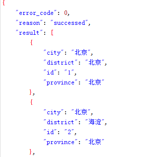 public class AllCity { private String error_code; private String reason; private String resultcode; private ArrayList<City> result;//省略getter,setter方法}ArrayList集合中封装了所有城市的信息,City类包含城市详细信息,具体代码如下: