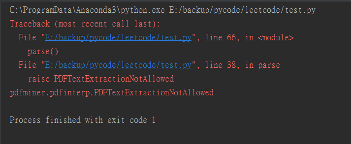 #coding:utf-8import importlibimport sysimport time importlib.reload(sys)time1 = time.time() frompdfminer.pdfparser import PDFParser, PDFDocumentfrompdfminer.pdfinterp import PDFResourceManager, PDFPageInterpreterfrompdfminer.converter import PDFPageAggregatorfrompdfminer.layout import LTTextBoxHorizontal, LAParamsfrompdfminer.pdfinterp import PDFTextExtractionNotAllowed text_path = r'5b931164edc09a226b3a12c4.pdf' def parse(): '''解析PDF文本,并保存到TXT文件中''' fp = open(text_path, 'rb') # 用文件对象创建一个PDF文档分析器 parser = PDFParser(fp) # 创建一个PDF文档 doc = PDFDocument() # 连接分析器,与文档对象 parser.set_document(doc) doc.set_parser(parser) # 提供初始化密码,如果没有密码,就创建一个空的字符串 doc.initialize() # 检测文档是否提供txt转换,不提供就忽略 ifnot doc.is_extractable: raise PDFTextExtractionNotAllowed else: # 创建PDF,资源管理器,来共享资源 rsrcmgr = PDFResourceManager() # 创建一个PDF设备对象 laparams = LAParams() device = PDFPageAggregator(rsrcmgr, laparams=laparams) # 创建一个PDF解释其对象 interpreter = PDFPageInterpreter(rsrcmgr, device) # 循环遍历列表,每次处理一个page内容 # doc.get_pages() 获取page列表 forpage indoc.get_pages(): interpreter.process_page(page) # 接受该页面的LTPage对象 layout = device.get_result() # 这里layout是一个LTPage对象 里面存放着 这个page解析出的各种对象 # 一般包括LTTextBox, LTFigure, LTImage, LTTextBoxHorizontal 等等 # 想要获取文本就获得对象的text属性, forx inlayout: if(isinstance(x, LTTextBoxHorizontal)): with open(r'2.txt', 'a') asf: results = x.get_text() print(results) f.write(results + "\n") if__name__ == '__main__': parse() time2 = time.time() print("总共消耗时间为:", time2 - time1) |