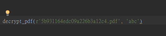 # coding:utf-8import osfromPyPDF2 import PdfFileReaderfromPyPDF2 import PdfFileWriter def get_reader(filename, password): try: old_file = open(filename, 'rb') print('run jiemi1') except Exception aserr: print('文件打开失败!'+ str(err)) returnNone # 创建读实例 pdf_reader = PdfFileReader(old_file, strict=False) # 解密操作 ifpdf_reader.isEncrypted: ifpassword isNone: print('%s文件被加密,需要密码!'% filename) returnNone else: ifpdf_reader.decrypt(password) != 1: print('%s密码不正确!'% filename) returnNone ifold_file inlocals(): old_file.close() returnpdf_reader def decrypt_pdf(filename, password, decrypted_filename=None): """ 将加密的文件及逆行解密,并生成一个无需密码pdf文件 :param filename: 原先加密的pdf文件 :param password: 对应的密码 :param decrypted_filename: 解密之后的文件名 :return: """ # 生成一个Reader和Writer print('run jiemi') pdf_reader = get_reader(filename, password) ifpdf_reader isNone: return ifnot pdf_reader.isEncrypted: print('文件没有被加密,无需操作!') return pdf_writer = PdfFileWriter() pdf_writer.appendPagesFromReader(pdf_reader) ifdecrypted_filename isNone: decrypted_filename = "".join(filename.split('.')[:-1]) + '_'+ 'decrypted'+ '.pdf' # 写入新文件 pdf_writer.write(open(decrypted_filename, 'wb')) decrypt_pdf(r'5b931164edc09a226b3a12c4.pdf', 'abc') |
