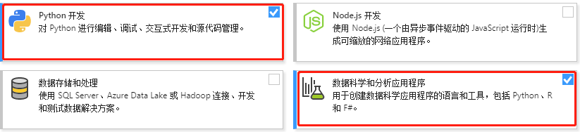 运行【Visual Studio Installer】。将Python开发和数据科学和分析应用程序 勾选即可。