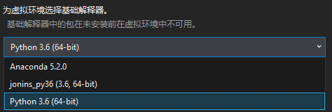 安装完毕后,Visual Studio会自动引入我们前面安装的Anaconda环境。